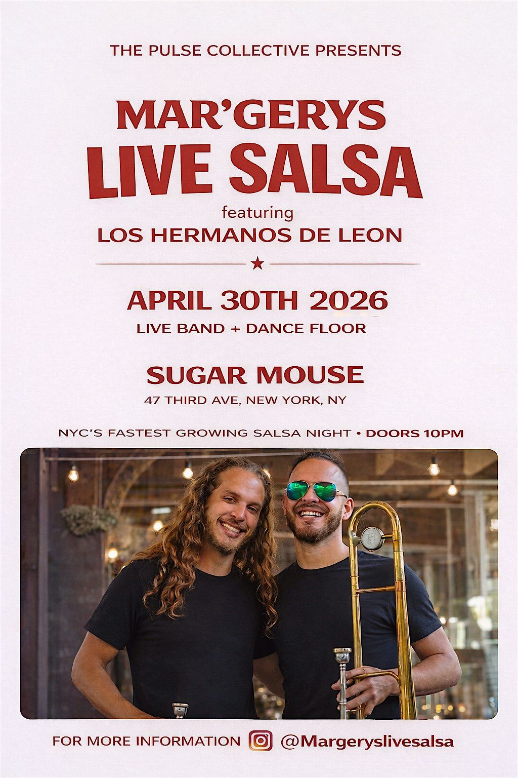 NYC's fastest growing salsa night. Join us and dance all night! For more Information, go to @MargerysLiveSalsaAbout this Event