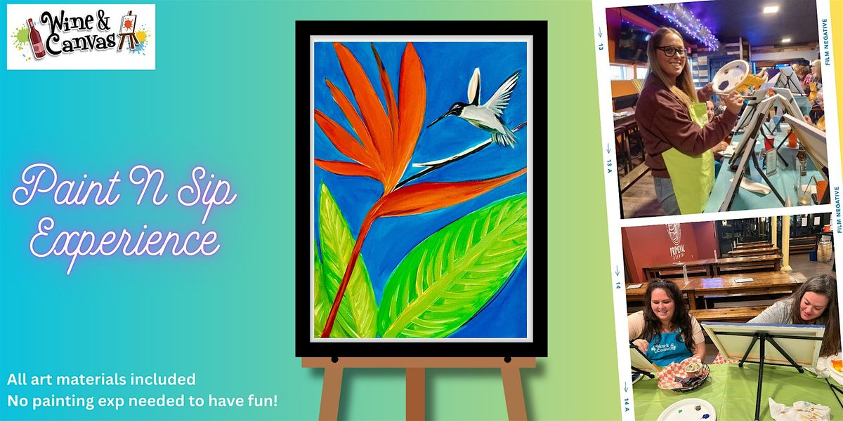 Join us for a relaxing evening of painting and sipping at Condado Tacos Noblesville as we bring the vibrant beauty of Hummingbird in Paradise to life! This painting features a sweet hummingbird flying in to catch a closer look at a gorgeous bird of paradise— you’ll be feeling spring vibes as you get your creativity going!