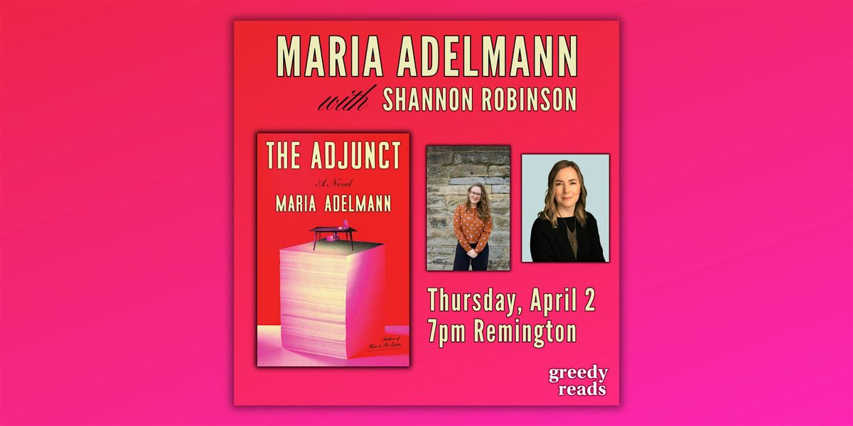 Join us on Thursday, April 2, in Remington to celebrate the release of Maria Adelmann's new novel, The Adjunct! Maria will be in conversation with Baltimore author Shannon Robinson!