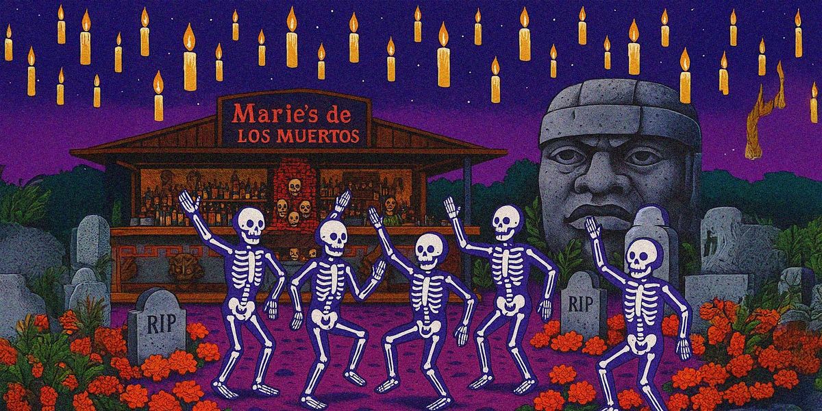 Join us for Marie's de los Muertos — a month-long immersive pop-up experience honoring Día de los Muertos through vibrant altars, spirited cocktails, and community celebration. Throughout October, Marie’s Tek Tec transforms into a colorful and reverent space to celebrate ancestors and loved ones passed, culminating in a powerful Aztec dance ceremony on Friday, November 1.
