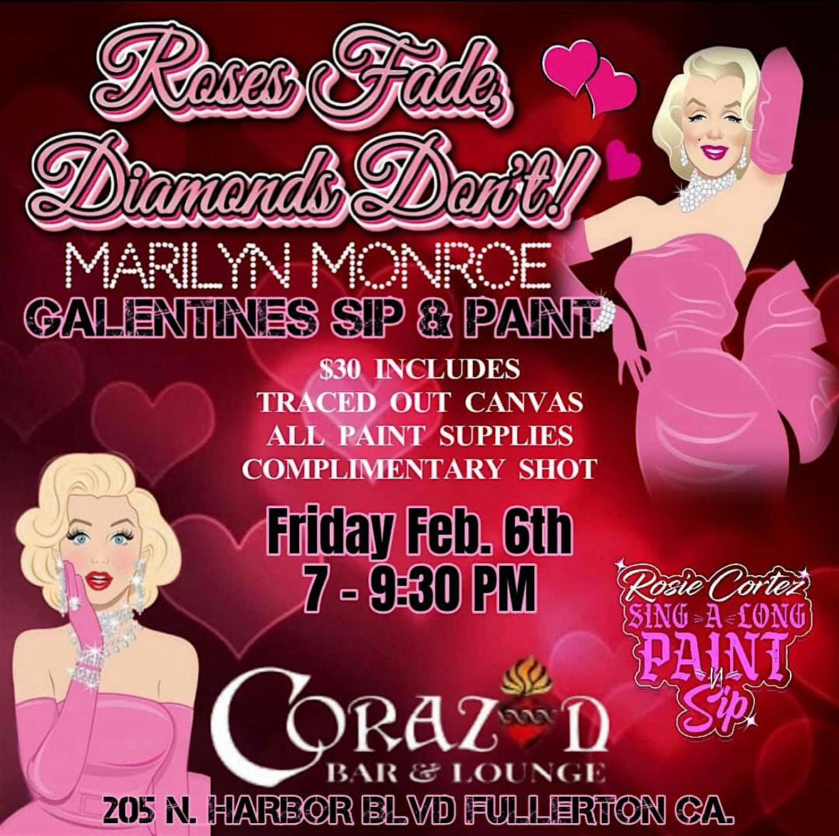 Celebrate Galentine's in glamorous style at our Marilyn Monroe - themed Sip N Paint night! Channel old Hollywood vibes as you paint a stunning Marilyn-inspired canvas while enjoying music, laughs, and drinks with your girl.