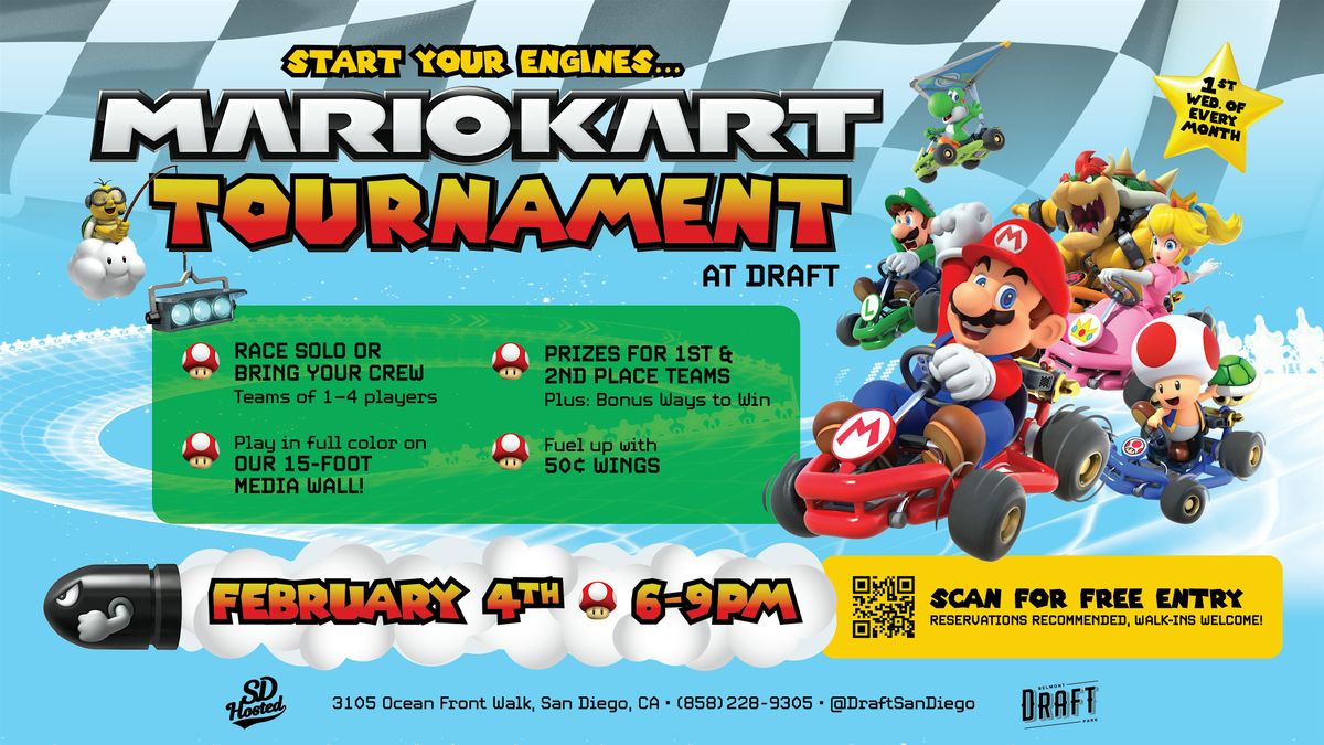 Get ready to put the pedal to the metal! Join us at Draft in Belmont Park on February 4th at 6 pm for a Mario Kart Tournament played on a 15-foot media wall that makes every shell, drift, and boost feel larger than life. 🎮🏁