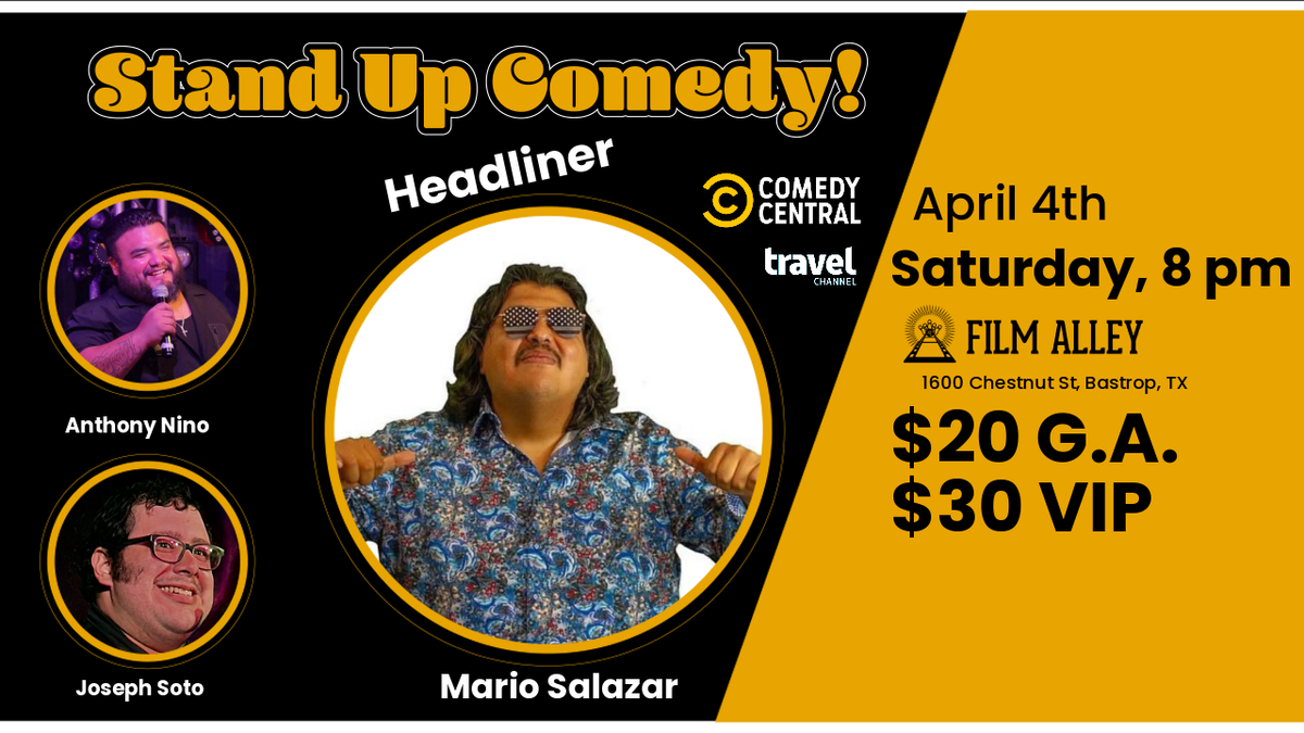 β¨ Experience the magic of Mario Salazar at Laugh Out Loud Comedy Club, where moments become memories that last a lifetime! ποΈ The iconic Laugh Out Loud Comedy Club in San Antonio, TX sets the perfect stage for an unforgettable celebration on April 18th, 2026 at 07:00 PM. π It's been a curated experience that brings together the best of entertainment and innovation, creating an atmosphere of wonder and excitement. From the moment you arrive, you'll be immersed in a world where the ordinary transforms into the extraordinary. π Book early to secure your place in what promises to be an event that will be talked about for years to come!