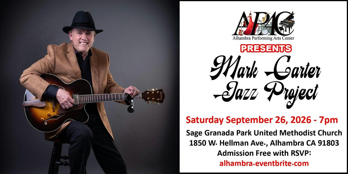 Enjoy an evening of smooth jazz and West Coast groove as APAC Presents: The Mark Carter Jazz Project takes the stage on Saturday, September 26, 2026. A longtime fixture in the Southern California music scene, Mark Carter brings decades of experience, rich musicality, and effortless style to this live performance.