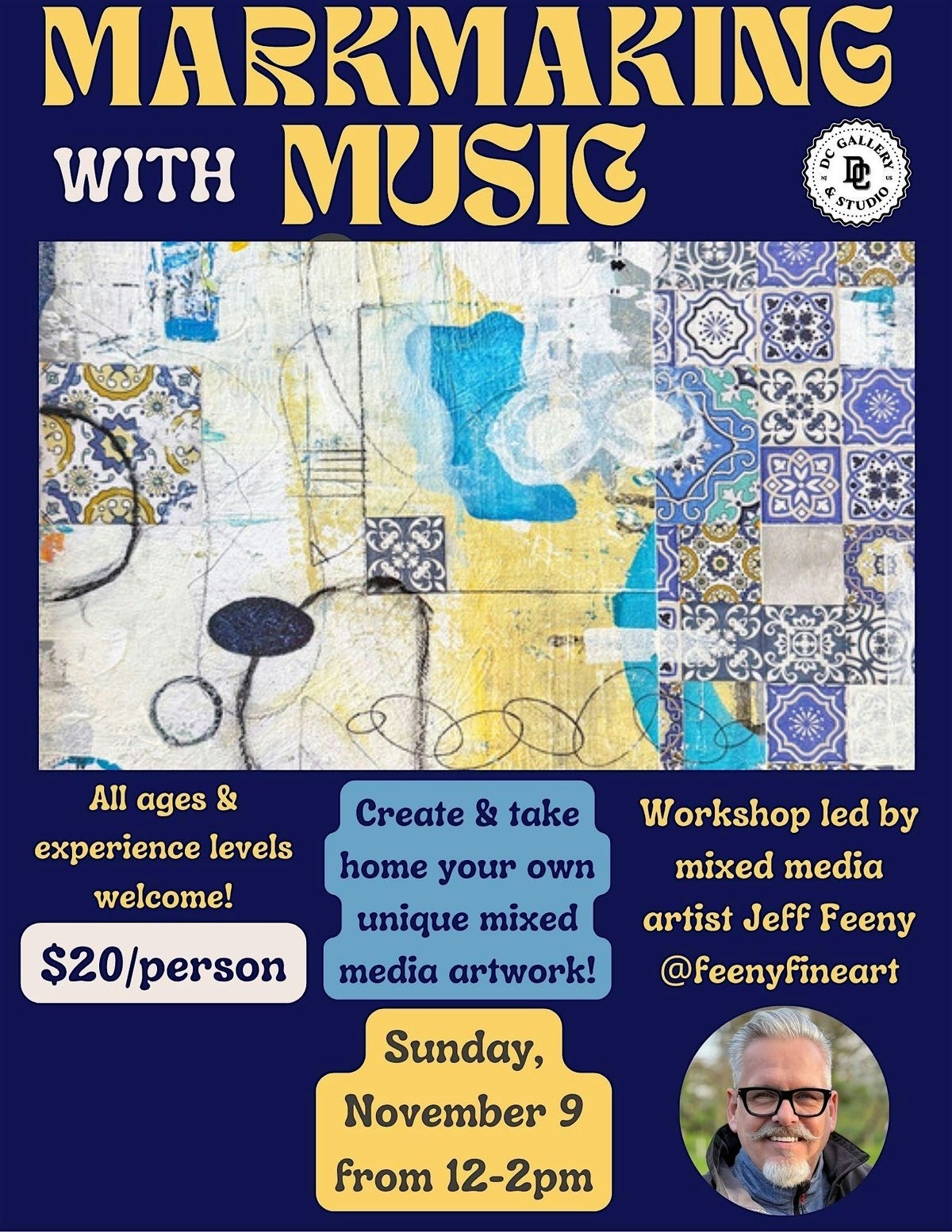 Come join us at DC Gallery & Studio for a unique experience of combining music and visual art! In this event, we will explore the connection between sound and visual expression through various mark-making techniques. Whether you're a seasoned artist or just looking to try something new, this event is perfect for anyone interested in the creative process. The Markmaking with Music Workshop will be led by South Jersey mixed media artist Jeff Feeny. Let the music inspire your artwork and unleash your creativity in a fun and interactive setting. Don't miss out on this one-of-a-kind event!