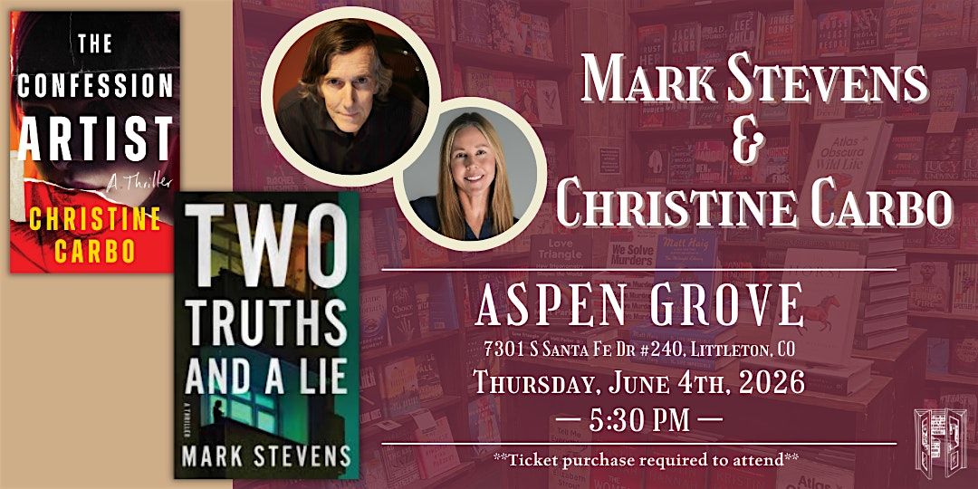 Join us as we celebrate thriller writers' Mark Stevens and Christine Carbo as they share about their new books on Thursday, June 4th at 5:30 PM at our Aspen Grove location!