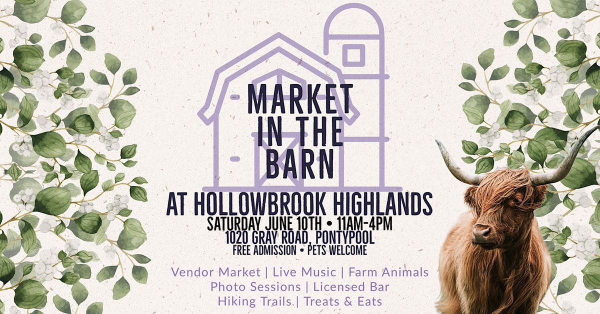 Enjoy a day in the highlands with us, at Market in the Barn! Shop from over 50 exceptional local vendors, take a stroll through the hiking trails, meet some Highland cows and other farm animals and snack on some delicious treats! Cold drinks from the licensed bar, live music all day and good vibes make for such a great day.