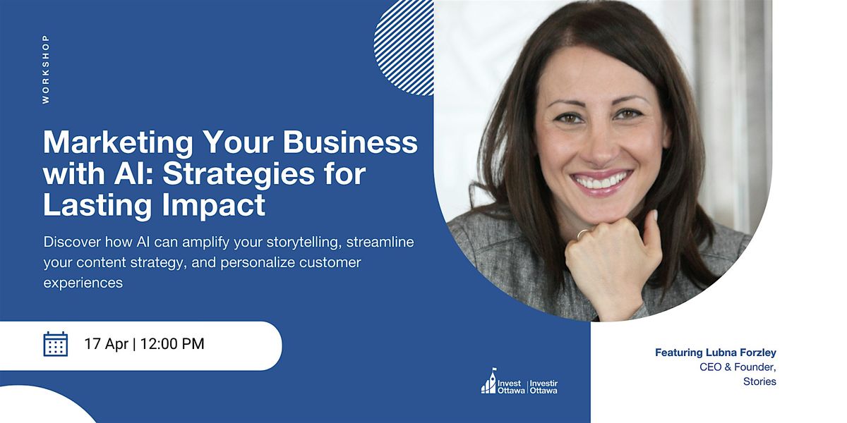 Invest Ottawa is excited to host Lubna Forzley, Founder and CEO of Stories, for an exclusive deep dive into AI-powered marketing strategies. Drawing from her experience with Coca-Cola - an iconic global brand - Lubna will guide you through the critical elements of developing a 360-degree marketing plan.