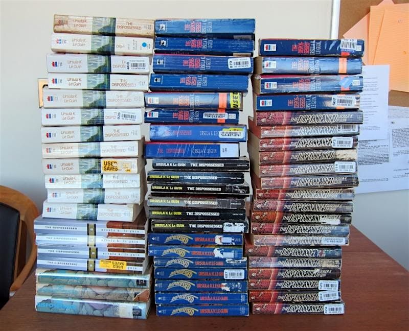 In this colloquium presentation, Danielle Aubert will discuss her Library of The Dispossessed and how she compiled reader's marks and examined the lived experience of one hundred used copies of The Dispossessed , a 1974 science fiction novel by Ursula Le Guin. The project resulted in her 2015 artist book, Marking the Dispossessed from Passenger Books. The book takes the form of polyphonic group readings (during which each reader is reading from a different copy of the Library), a book of readers’ marks, and an instrumental interpretation of the markings, composed by Jason Treuting of So Percussion and Mobius Percussion.