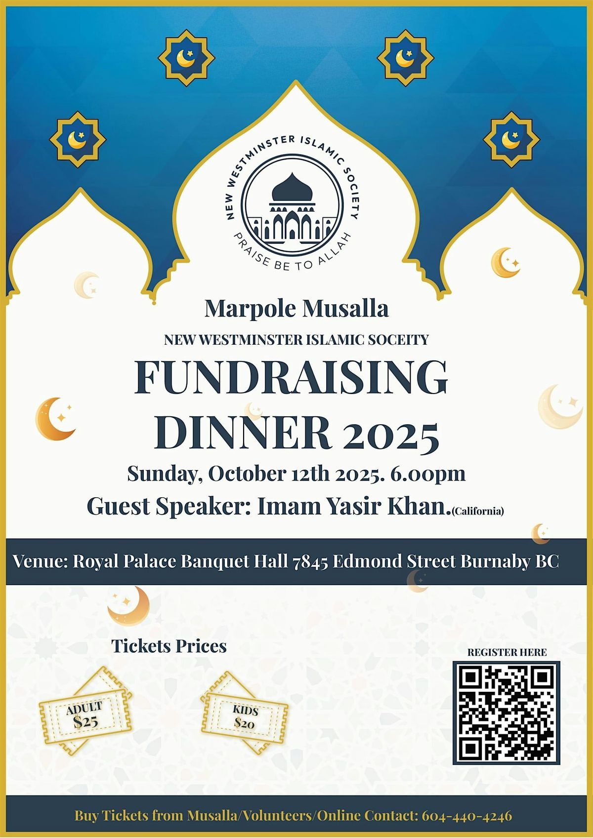 Join us on Sunday, October 12, 2025, at 6:00 PM for our Annual Fundraiser, as we come together to support the noble cause of acquiring a permanent mosque facility to better serve the growing Muslim community in Vancouver.