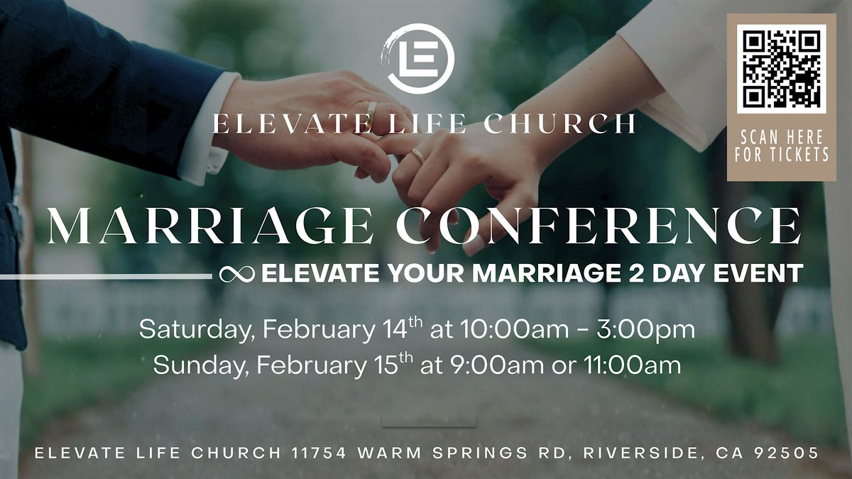 Join us for the Elevate Life Church Marriage Conference, a powerful two-day experience created to invest in your relationship, restore connection, and help couples grow deeper together.
