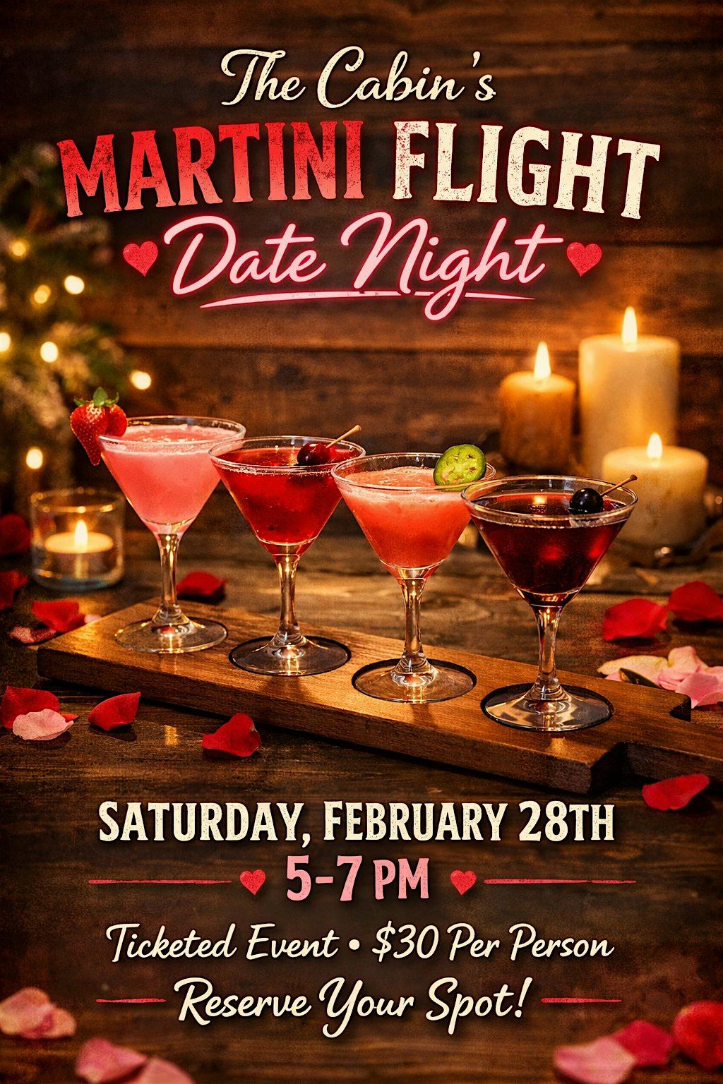 Ready for a fun in-person night out? Join us for Martini Flight Date Night where you and your special someone can sip on a variety of delicious martinis. It’s the perfect chance to try new flavors, share some laughs, and enjoy a cozy vibe together. Whether you’re a martini aficionado or just looking for a chill date idea, this night’s all about good drinks and good company!