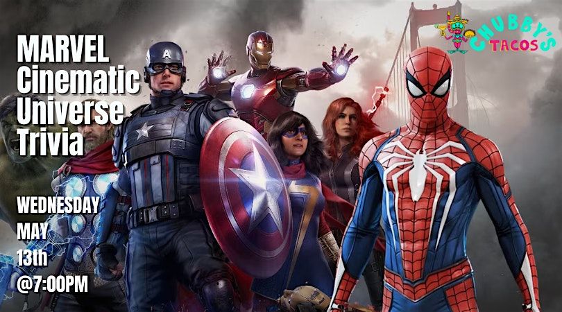 Join us for Marvel Universe Movie Trivia at Chubby's Tacos Durham on Wednesday, May 13th, starting at 7:00 pm, For FIVE unique and challenging rounds on your favorite Marvel Movies.