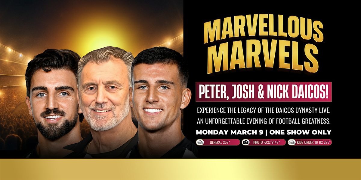 It is the fairytale family story of Australian sport. In this brand-new updated appearance, hear the honest thoughts of Nick, Josh and Peter Daicos β all together β in one incredible event.