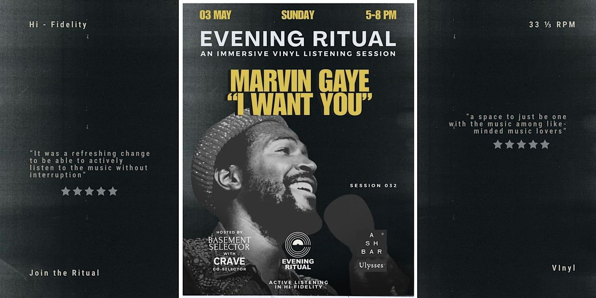 On Sunday, MAY 3, 2026 The Evening Ritual presents : MARVIN GAYE "I WANT YOU" at Ash-Bar at the Ulysses Hotel in Mount Vernon.