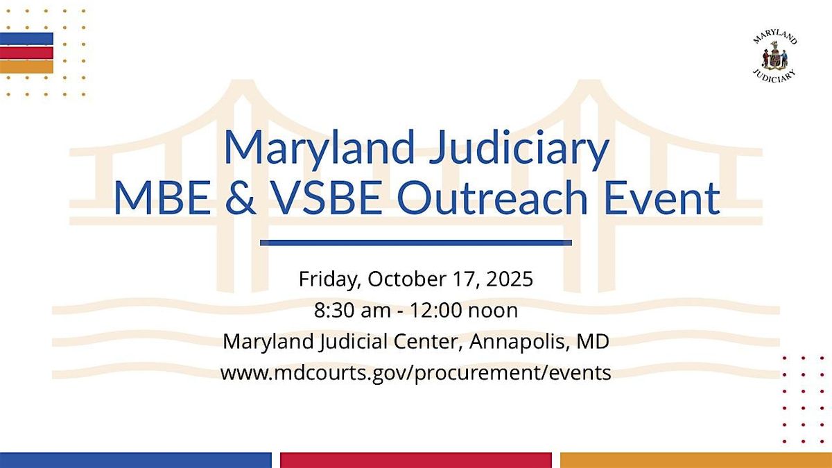 Join us for an exciting opportunity designed for Minority Business Enterprises (MBEs) and Veteran-Owned Small Business Enterprises (VSBEs) to connect, learn, and grow. Meet representatives from the Maryland Judiciary, state agencies, prime contractors, subcontractors, and resource partners to build relationships and explore new opportunities.