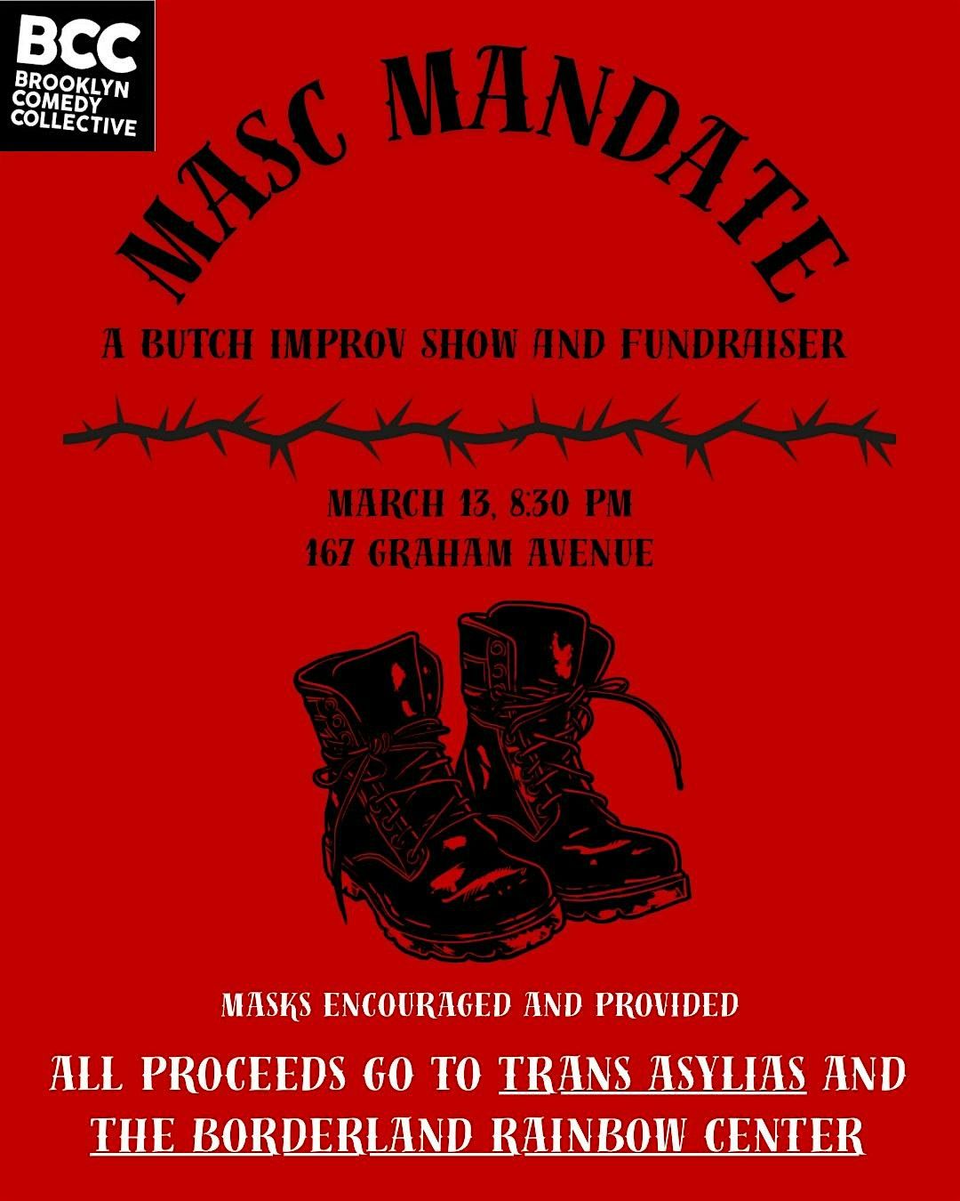 Masc Mandate is an improv show that is made up of the funniest, hottest, most bad ass people in the world: BUTCHES! All proceeds go towards Trans Asylias-a group dedicated to relocating trans asylum seekers to safer countries and The Borderland Rainbow Center-an lgbtq non profit in the Borderland of El Paso, Texas. Masks are encouraged & will be provided at the show-because what’s better than a bunch of silly dykes promoting community care & mutual aid?