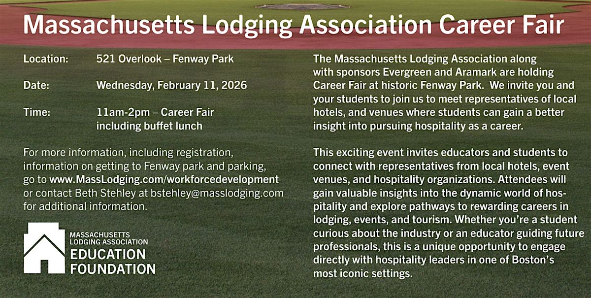 The Massachusetts Lodging Association are holding Career Fair at Fenway Park for students pursing careers in hospitality.