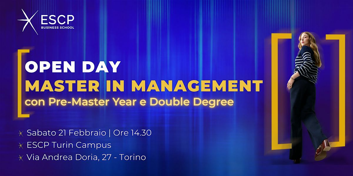 Sabato 21 febbraio partecipa all'Open Day di ESCP Business School e vieni a scoprire il nostro campus in Via Andrea Doria, 27, a Torino.