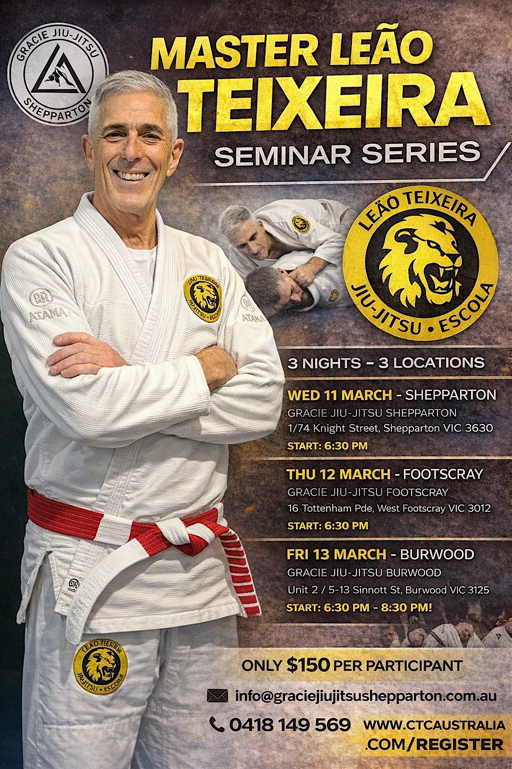 Known for his clear, structured teaching style, Master Leão emphasises technical precision, efficiency, and practical application suitable for practitioners of all levels. His seminars focus not only on technique, but also on the principles, concepts, and philosophy that underpin effective Brazilian Jiu-Jitsu.