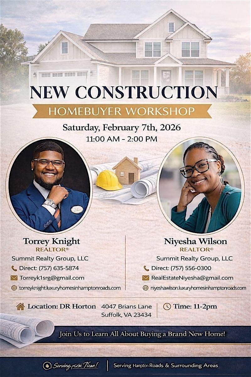 Don’t miss this FREE New Construction Homebuyer Workshop where we’ll walk you through the process from start to finish—no pressure, just real education.