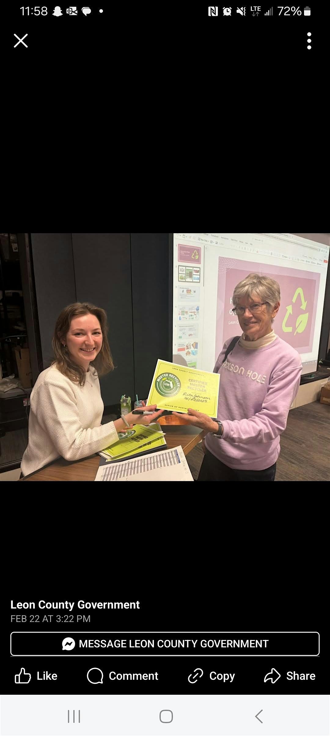 The Master Recyclers Class empowers Leon County residents to reduce waste, recycle effectively, and become leaders in their community. Through hands-on learning and local insights, participants will gain the skills and knowledge to guide others in creating a cleaner, healthier, and more sustainable community.