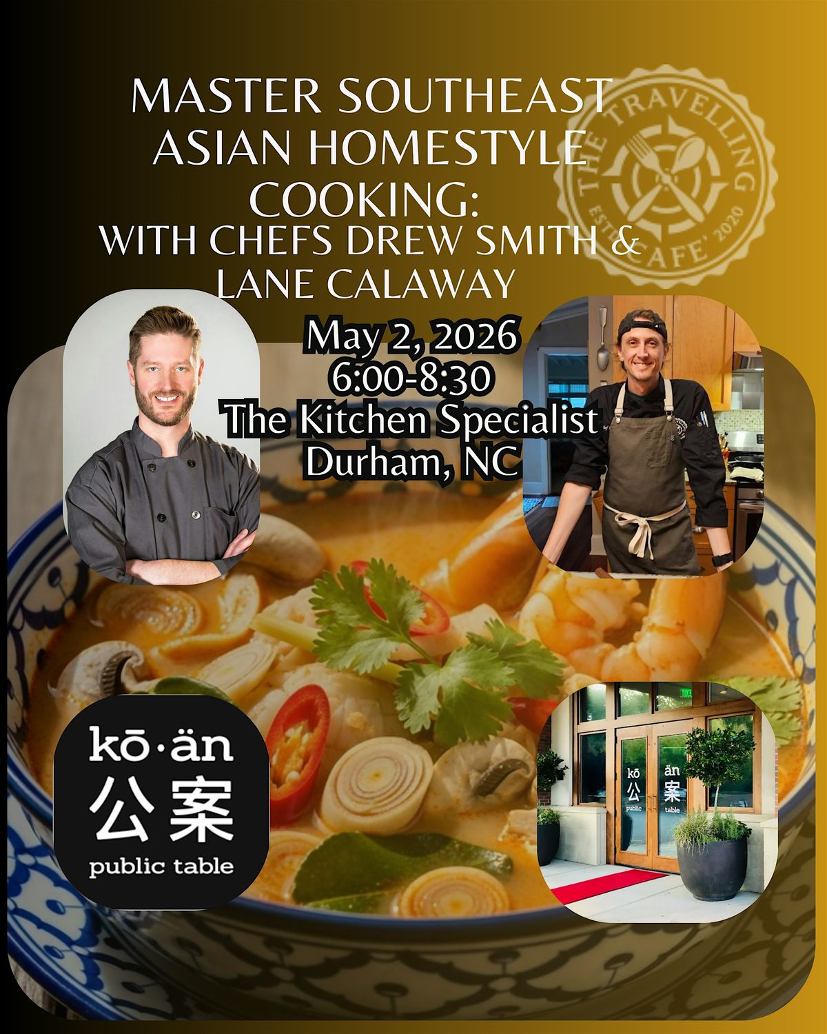Join competitive cooking winners, Chefs Drew Smith and Lane Calaway of the renowned restaurants So.ca (Raleigh) and Ko.an (Cary), for an immersive demonstration-style class exploring the vibrant flavors of Thai and Southeast Asian cuisine.
