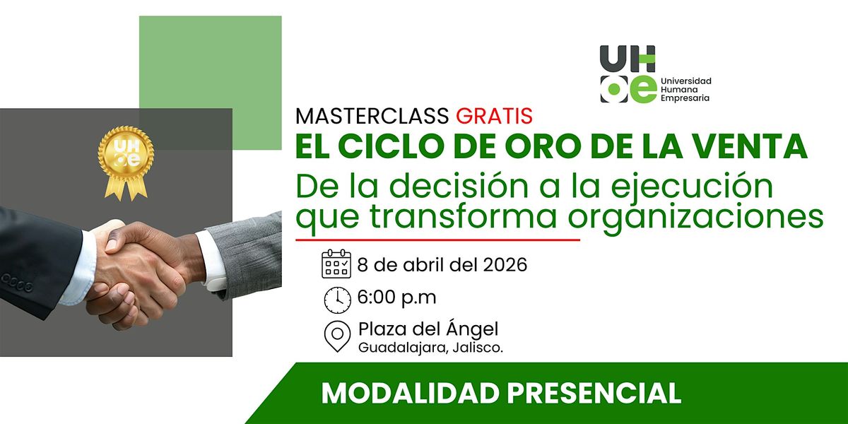 ¿Quieres llevar tus ventas al siguiente nivel? Únete a esta masterclass presencial donde descubrirás los secretos del ciclo de oro de la venta. Prepárate para aprender técnicas infalibles, conectar con otros profesionales y transformar tu manera de vender. ¡No te lo pierdas, ven a vivir una experiencia única que impulsará tu éxito comercial!