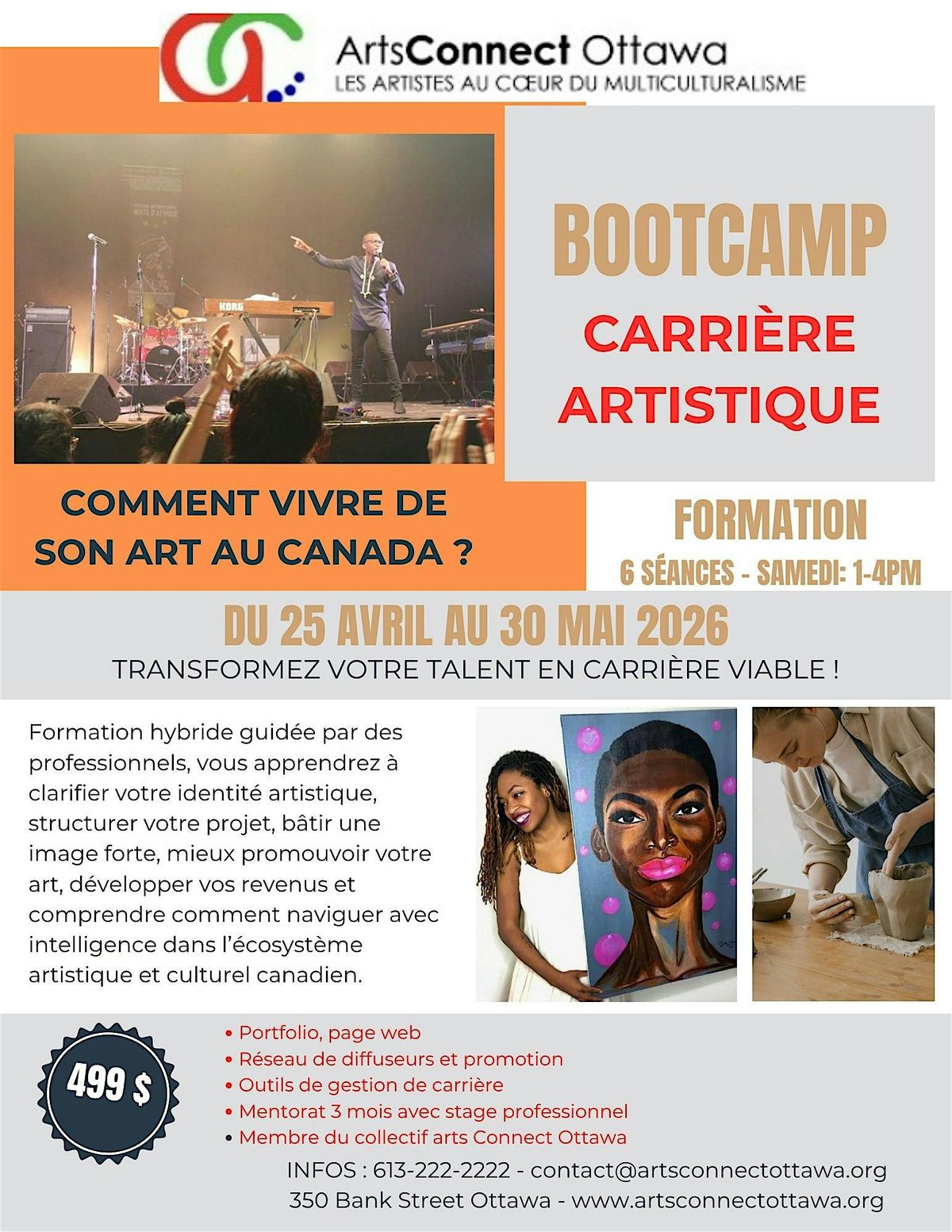 Formation hybride guidée par des professionnels, vous apprendrez à clarifier votre identité artistique, structurer votre projet, bâtir une image forte, mieux promouvoir votre art, développer vos revenus et comprendre comment naviguer avec intelligence dans l’écosystème artistique et culturel canadien.