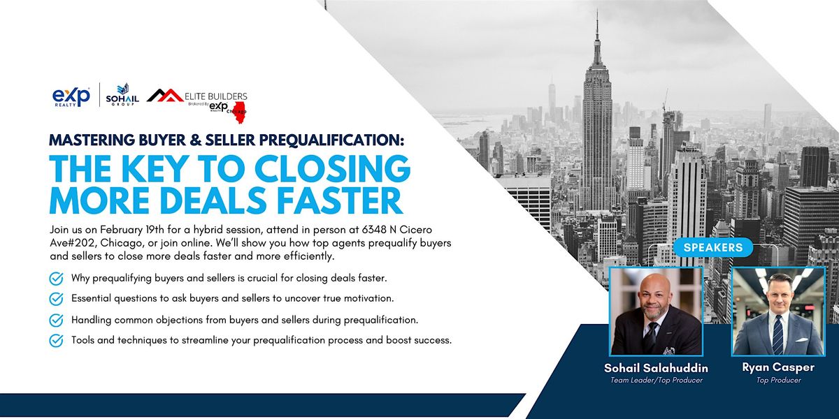Join us on February 19th for a hybrid session, attend in person at 6348 N Cicero Ave#202, Chicago, or join online. We’ll show you how top agents prequalify buyers and sellers to close more deals faster and more efficiently.