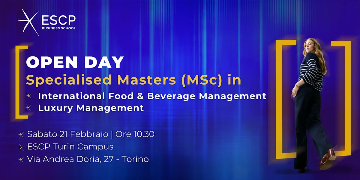 Sabato 21 febbraio 2026 partecipa all'Open Day di ESCP Business School e vieni a scoprire il nostro nuovo campus in Via Andrea Doria, 27, a Torino.