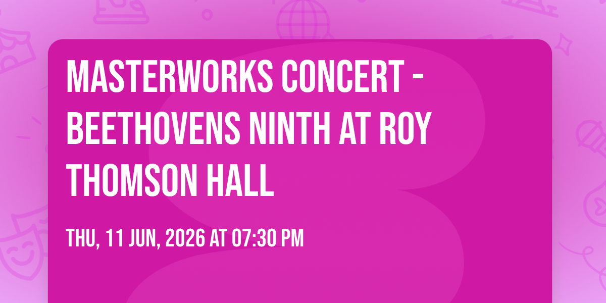 🌟 Be part of history at Masterworks Concert - Beethovens Ninth at Roy Thomson Hall, an extraordinary gathering that will captivate your imagination! 🏛️ The prestigious Roy Thomson Hall in Toronto, ON sets the stage for an unforgettable experience on June 13th, 2026 at 07:30 PM. ✨ They are bringing together the finest elements of entertainment and innovation to create moments that will take your breath away. From the moment you arrive, you'll be immersed in an atmosphere of wonder and excitement. 🎯 This carefully planned event ensures every guest experiences something truly special. 🎊 Early booking is recommended for this must-attend event of the season!