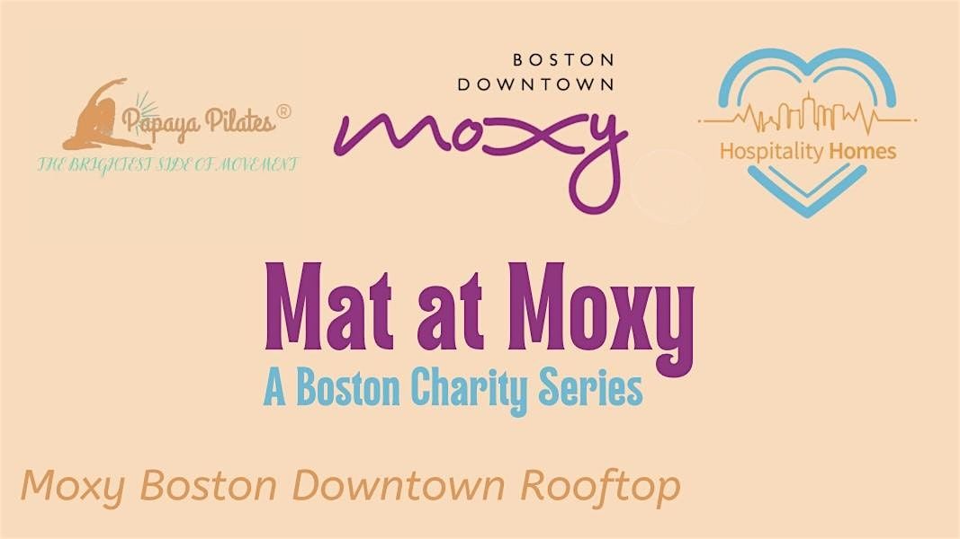 Mat at Moxy, a Boston Charity Series by Papaya Pilates at the Moxy Boston Downtown rooftop! 100% of profits donated to Hospitality Homes.