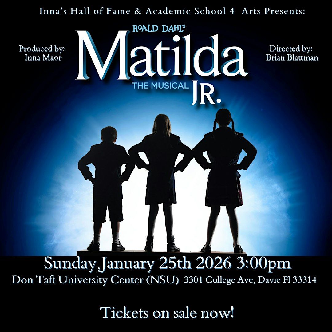 Academic School 4 Arts and Inna’s Hall of Fame proudly present Matilda Jr. the Musical, directed by Brian Blattman, choreographed by Lisa Emrecovic, and produced by Inna Maor. This exciting production brings Roald Dahl’s beloved story to life with energetic music, bold characters, and a celebration of courage, creativity, and the power of standing up for what’s right.