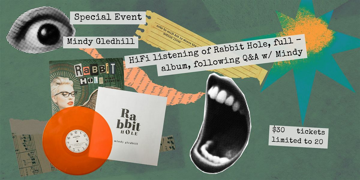 Seven years since Rabbit Hole emerged. January 25th, Mindy Gledhill joins us at B-Side for a special anniversary session - full album on vinyl, followed by Q&A with the artist. An intimate evening honoring the record and the woman behind it.