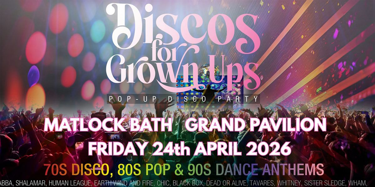 The legendary Discos for Grown ups 70s 80s 90s disco party returns to the historic Grand Pavilion ballroom Friday 24th April 2026 for a night of 70s, 80s and 90s dance floor classics to boogie to!