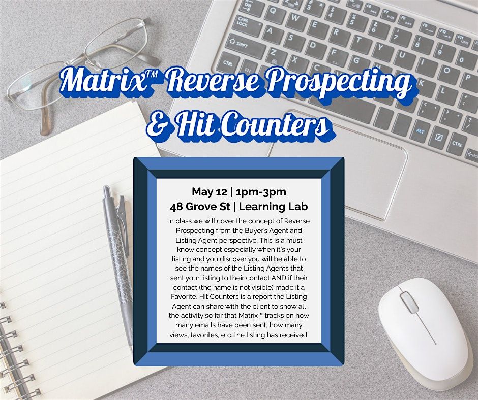 In class we will cover the concept of Reverse Prospecting from the Buyer’s Agent and Listing Agent perspective. This is a must know concept especially when it's your listing and you discover you will be able to see the names of the Listing Agents that sent your listing to their contact AND if their contact (the name is not visible) made it a Favorite. Hit Counters is a report the Listing Agent can share with the client to show all the activity so far that Matrix™ tracks on how many emails have been sent, how many views, favorites, etc. the listing has received.