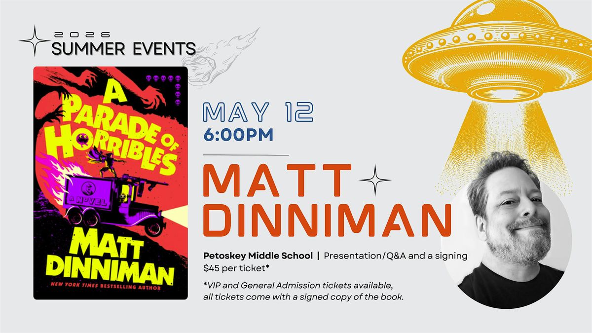 Join McLean and Eakin Booksellers for an author event of a LIFETIME with the one and only Matt Dinniman, to celebrate the release of his newest book, A Parade of Horribles, on Tuesday, May 12th at 6:00 pm at Petoskey Middle School.