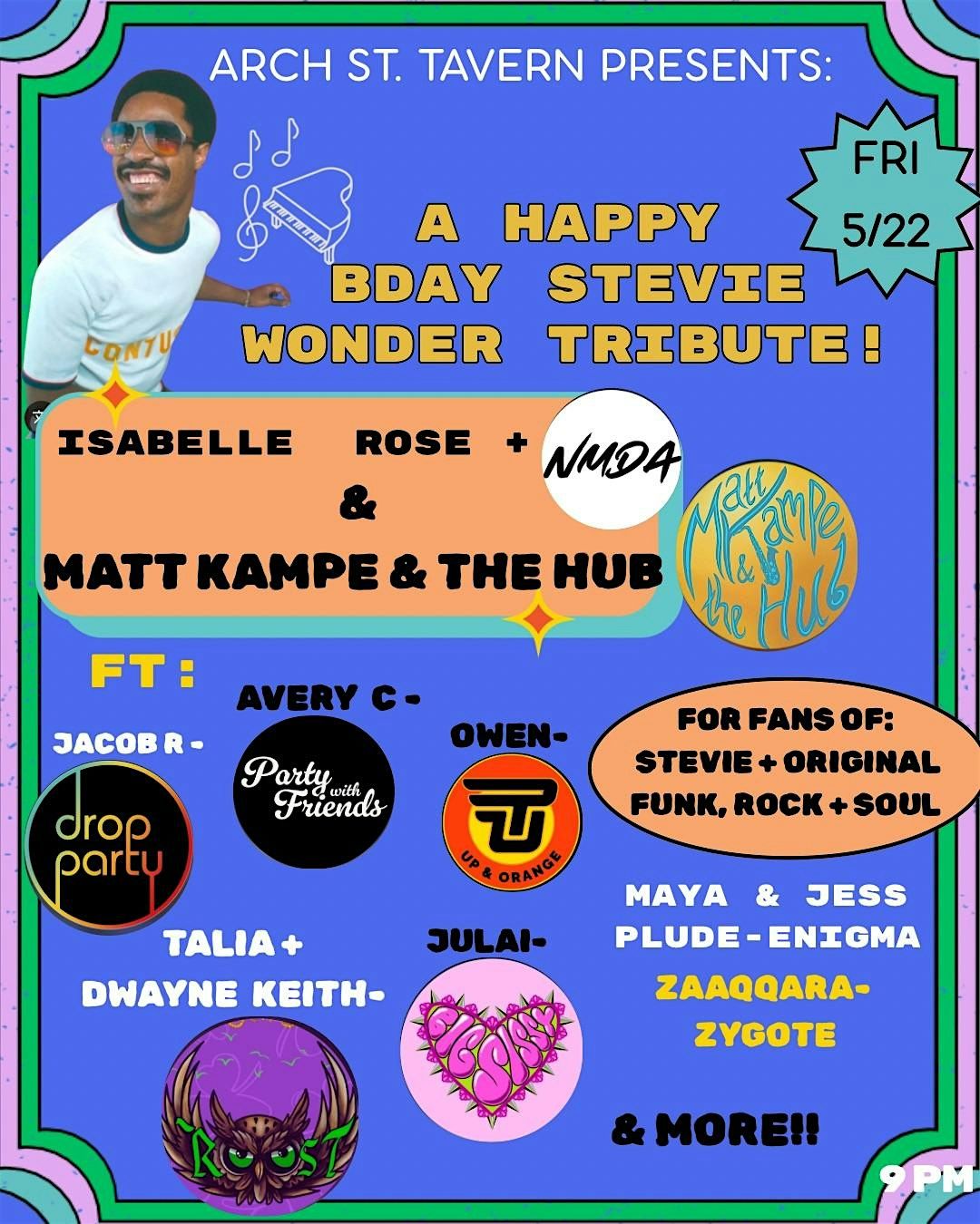 Matt Kampe & the Hub, Isabell Rose, Talia & Dwayne Keith and more present a tribute to Stevie Wonder. This night will be epic.