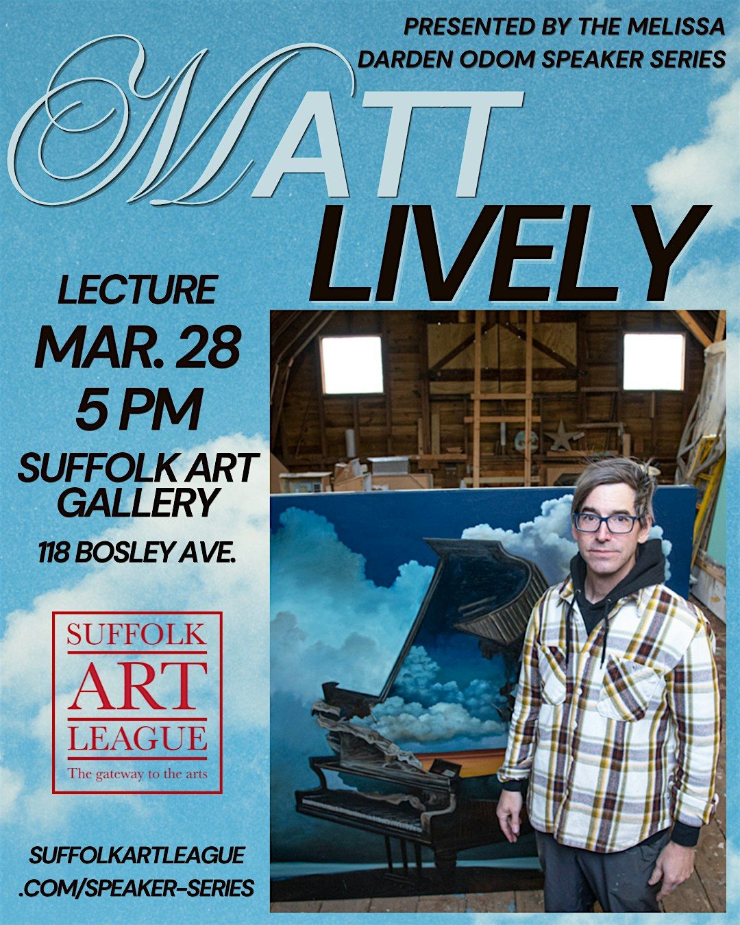 The Melissa Darden Odom Speaker Series Memorial Fund along with the Suffolk Art League provides lectures to the residents of Suffolk and beyond at no cost as part of our community outreach and dedication to arts education. Some of our programs are organized in collaboration with, but not limited to, the Virginia Museum of Fine Arts and is supported in part by their Paul Mellon Endowment and the Jean Stafford Camp Memorial Fund.