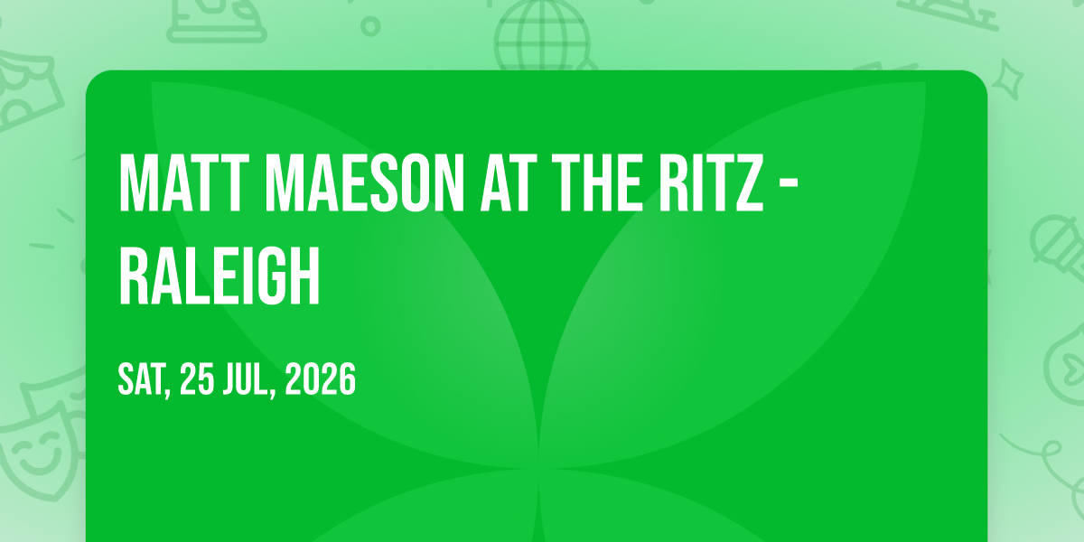 π Journey into wonder at Matt Maeson at The Ritz - Raleigh, where extraordinary experiences await around every corner! ποΈ Set against the backdrop of The Ritz - Raleigh in dynamic Raleigh, NC, this event promises to exceed all expectations. π Join us on July 25th, 2026 at 07:00 PM for a celebration that combines innovation, entertainment, and community spirit in perfect harmony. β¨ There will be an atmosphere where memories are made and stories come alive, ensuring every guest experiences something truly remarkable. π This is more than just an event; it's a journey into the extraordinary!