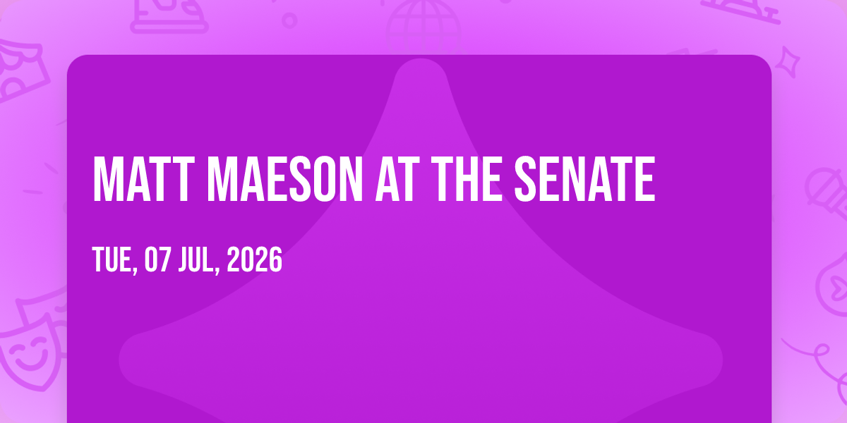 ๐ Journey into wonder at Matt Maeson at The Senate, where extraordinary experiences await around every corner! ๐๏ธ Set against the backdrop of The Senate in dynamic Columbia, SC, this event promises to exceed all expectations. ๐ Join us on July 7th, 2026 at 08:00 PM for a celebration that combines innovation, entertainment, and community spirit in perfect harmony. โจ There will be an atmosphere where memories are made and stories come alive, ensuring every guest experiences something truly remarkable. ๐ This is more than just an event; it's a journey into the extraordinary!