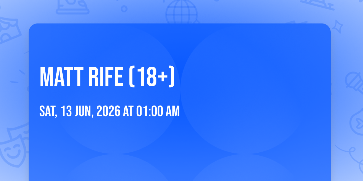π Location: 43.5635, -96.747π Journey into wonder at Matt Rife (18+), where extraordinary experiences await around every corner! ποΈ Set against the backdrop of Denny Sanford Premier Center in dynamic Sioux Falls, SD, this event promises to exceed all expectations. π Join us on June 13th, 2026 at 01:00 AM for a celebration that combines innovation, entertainment, and community spirit in perfect harmony. β¨ There will be an atmosphere where memories are made and stories come alive, ensuring every guest experiences something truly remarkable. π This is more than just an event; it's a journey into the extraordinary!
