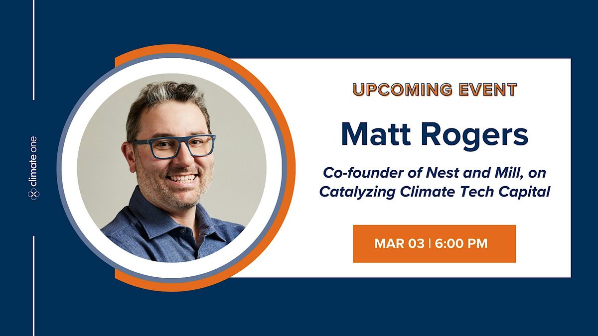 Join Climate One Founder Greg Dalton in conversation with Mill and Nest Co-founder Matt Rogers.