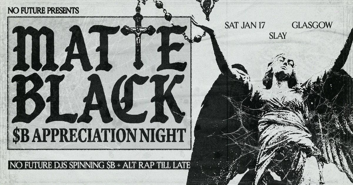 ONE LAST PIC AND I'LL BE GONE MATTE BLACK: $B APPRECIATION NIGHTSATURDAY 17TH JANUARY 2026SLAY GLASGOW DOORS AT 11PM 18+