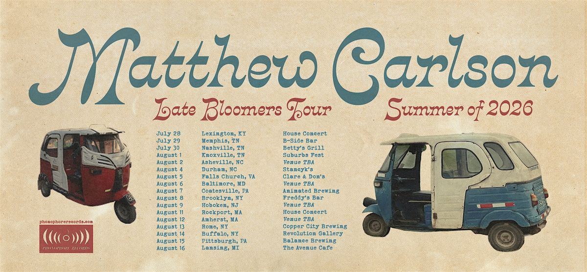 Singer/songwriter, Matthew Carlson brings his deeply engaging songs and stories to Betty's Grill in Nashville, TN.