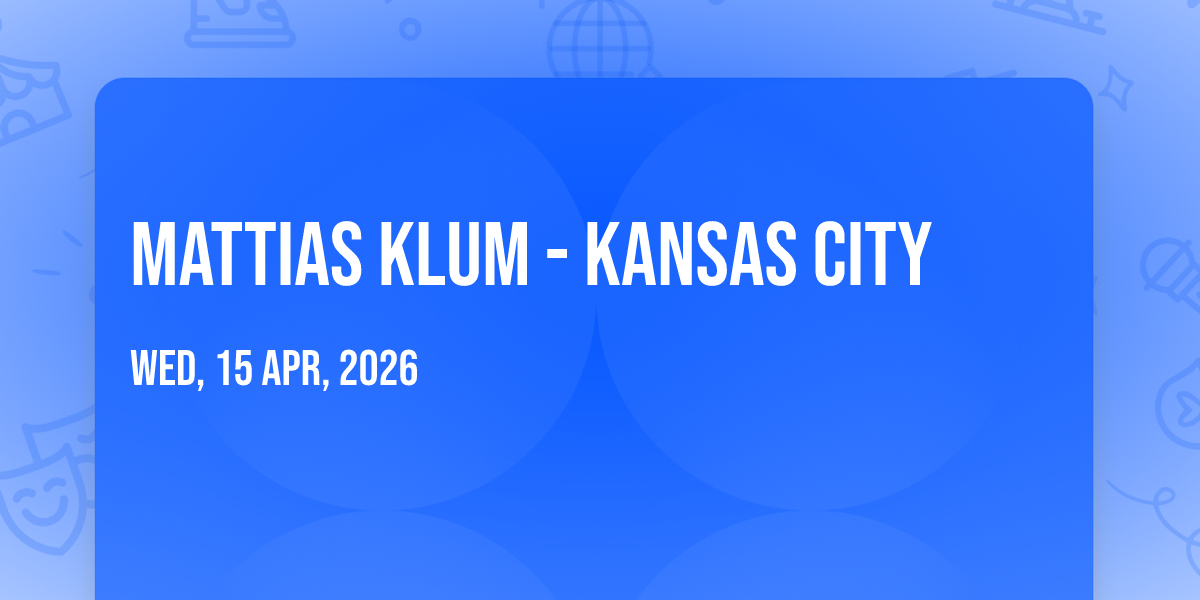 π Location: 39.0943, -94.5883π Welcome to Mattias Klum - Kansas City, where dreams come alive and possibilities are endless! ποΈ Join us at Muriel Kauffman Theatre at Kauffman Center for the Performing Arts in the heart of Kansas City, MO for an event that defies expectations. π On April 15th, 2026 at 12:30 AM, be part of something truly extraordinary as we bring together innovation, entertainment, and pure magic. β¨ Every aspect has been carefully designed to ensure an unforgettable experience for all our guests. Whether you're seeking adventure, inspiration, or simply a break from the ordinary, this event promises to deliver beyond your wildest dreams. π Prepare for a journey into the extraordinary!