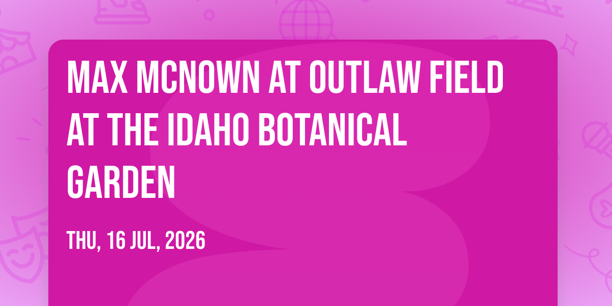 π Journey into wonder at Max McNown at Outlaw Field at the Idaho Botanical Garden, where extraordinary experiences await around every corner! ποΈ Set against the backdrop of Outlaw Field at the Idaho Botanical Garden in dynamic Boise, ID, this event promises to exceed all expectations. π Join us on July 16th, 2026 at 07:00 PM for a celebration that combines innovation, entertainment, and community spirit in perfect harmony. β¨ There will be an atmosphere where memories are made and stories come alive, ensuring every guest experiences something truly remarkable. π This is more than just an event; it's a journey into the extraordinary!