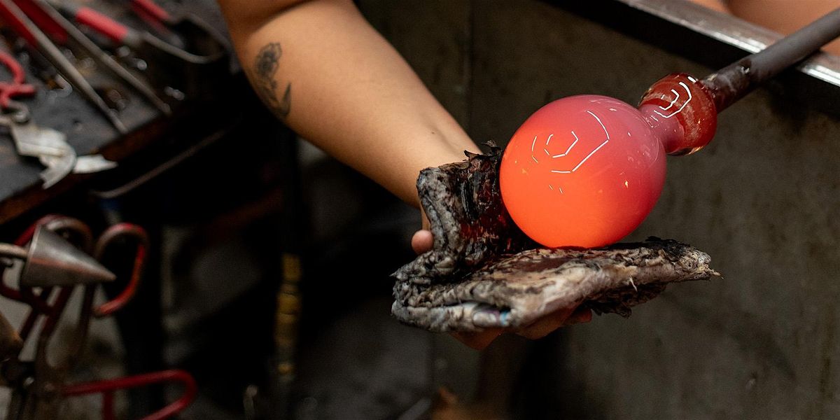 In this two-day workshop, participants will learn the basics of working with soft glass. Students will learn how to navigate the hot shop, incorporate color into pieces, and make art like paper weights and ornaments. Using tools, breath, and heat, each participant will have a chance to learn how the glass reacts to what is happening around it. Students will acquire a better understanding of how the glass turns from a liquid into a colorful, solid piece of art!