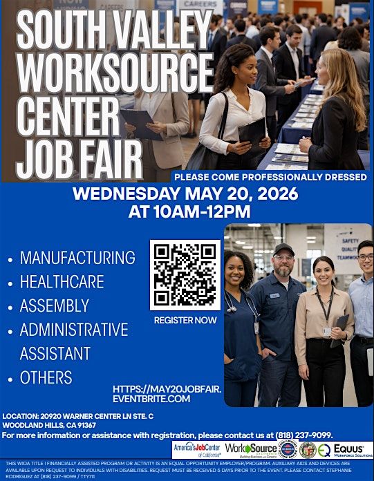 This WIOA Title I financially assisted program or activity is an equal opportunity employer/program. Auxiliary aids and devices are available upon request to individuals with disabilities. Request must be received 5 days prior to the event. Please contact Stephanie Rodriguez at (818) 237- 9099 / TTY 711 or email at [email protected]